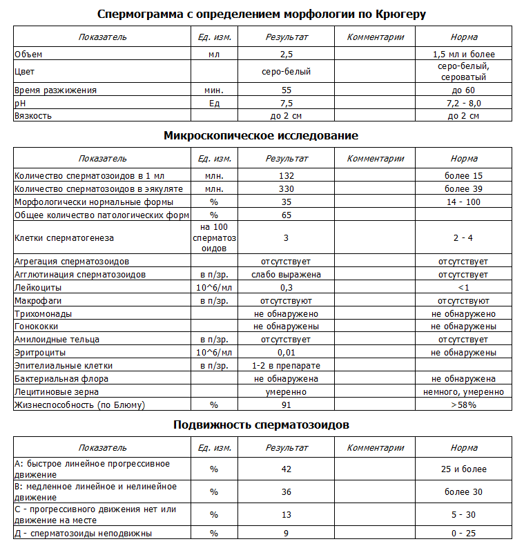 Результаты спермограммы